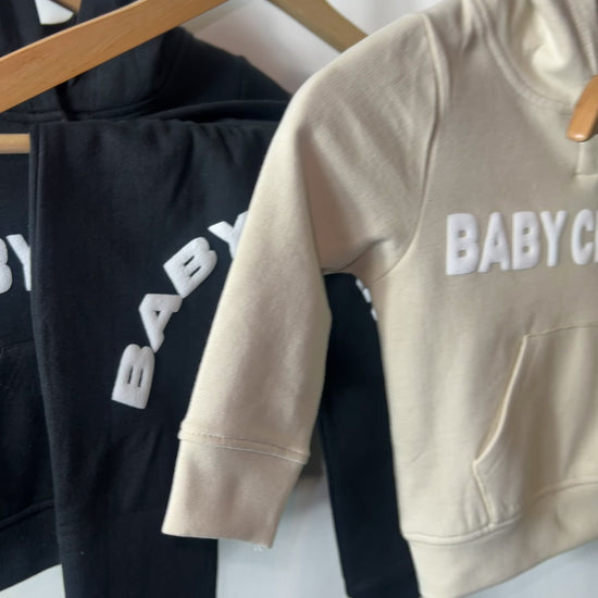 Introducing our Baby & Toddler Bombay Beige Sweatpants, made from 100% organic cotton for exceptional softness and comfort for your little one. These cozy sweatpants feature "Baby Charm" written in the style of an upside down semi-circle on the front, adding a stylish and charming touch. Perfect for keeping your child comfortable and fashionable, these sweatpants combine premium quality with unique design details for everyday wear.